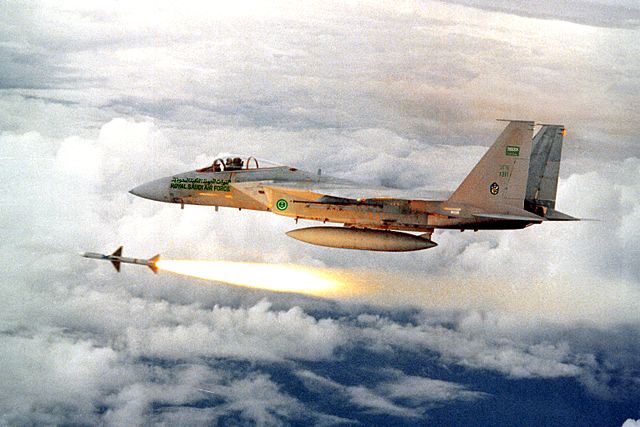 مقاتله F-15C مسلحه بصاروخ (L) Sidewinder , وبعد 4 أيام تم اجبر 6 طائرة